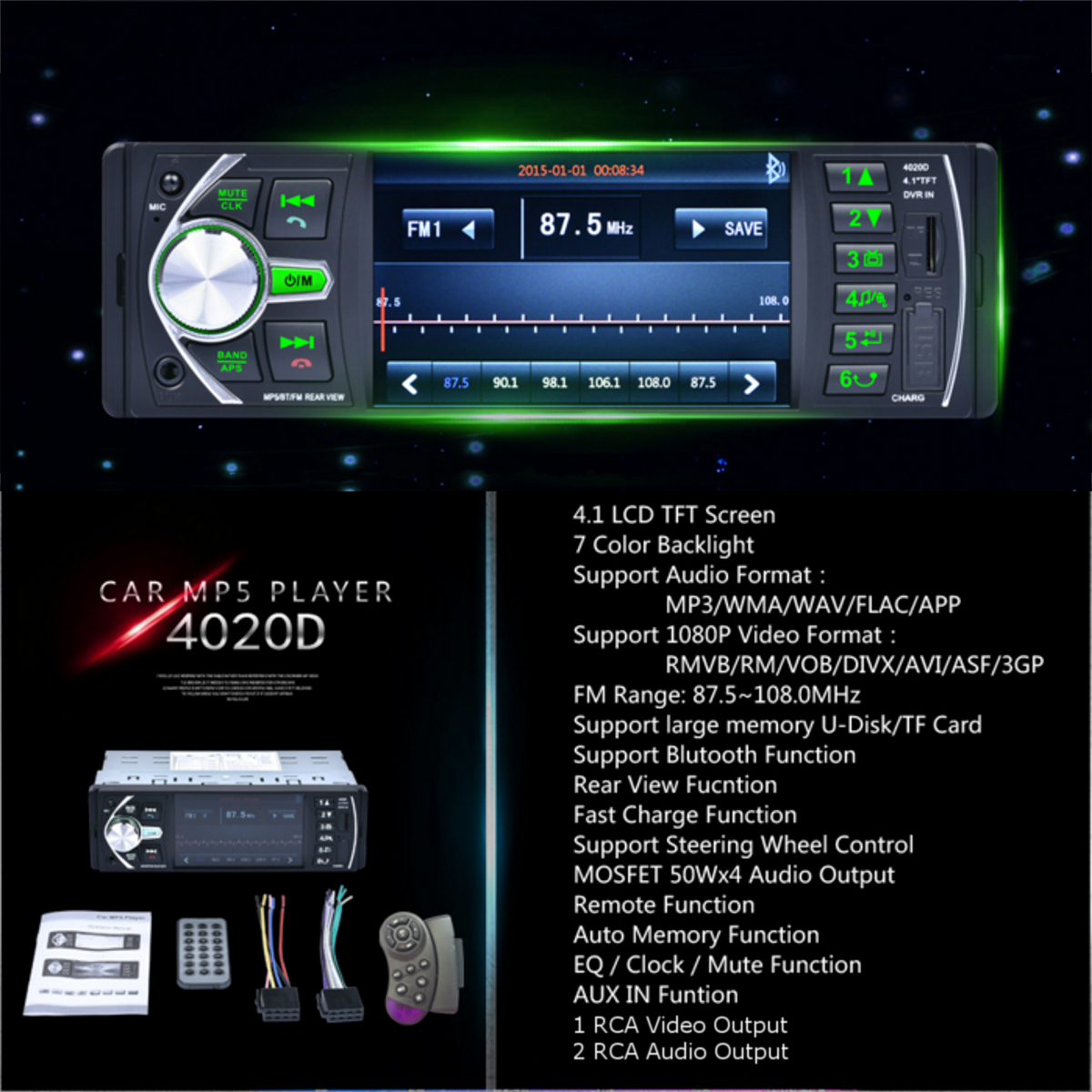 4.1 pulgadas HD Bluetooth en el tablero del coche estéreo de audio MP5 reproductor de MP3 USB AUX FM AM Radio