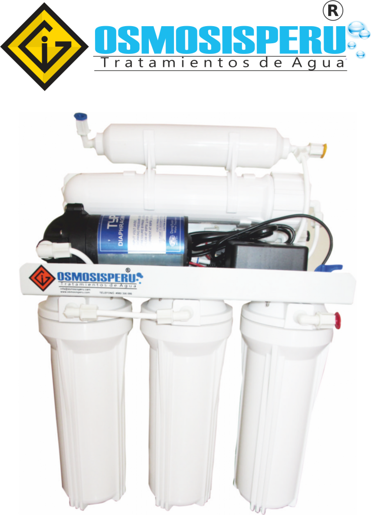 El sistema purificador de agua residencial, casero o para oficina por osmosis inversa consta de cinco etapas de purificación, el más completo en su tipo en el mercado actualmente.