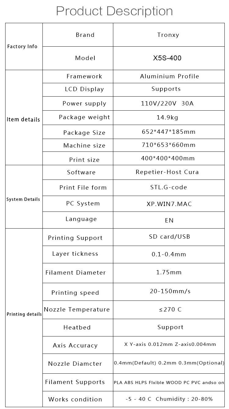 1. Con 400*400*400mm Gran tamaño de impresión, coincida con sus diversos requisitos de impresión
