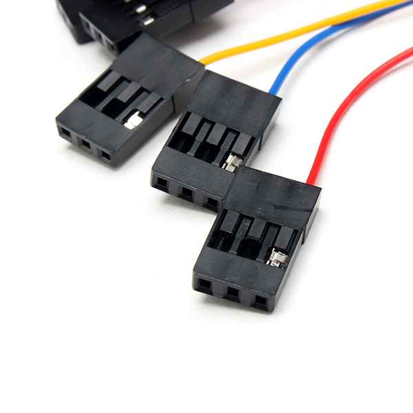 * 8 x 3 pines orificios pasantes para conectores macho para conexiones ESC / Servo.
