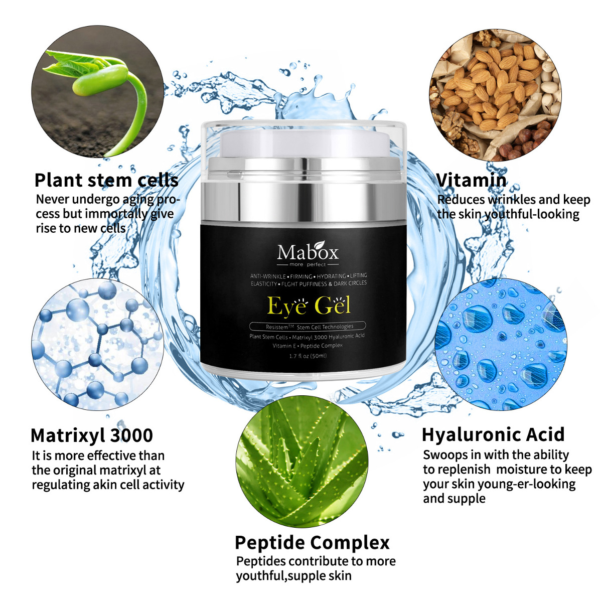 Gel Reafirmante Aligeramiento 50ml Mabox Eye Gel Cream Eliminar Dark Circle Hyaluronic