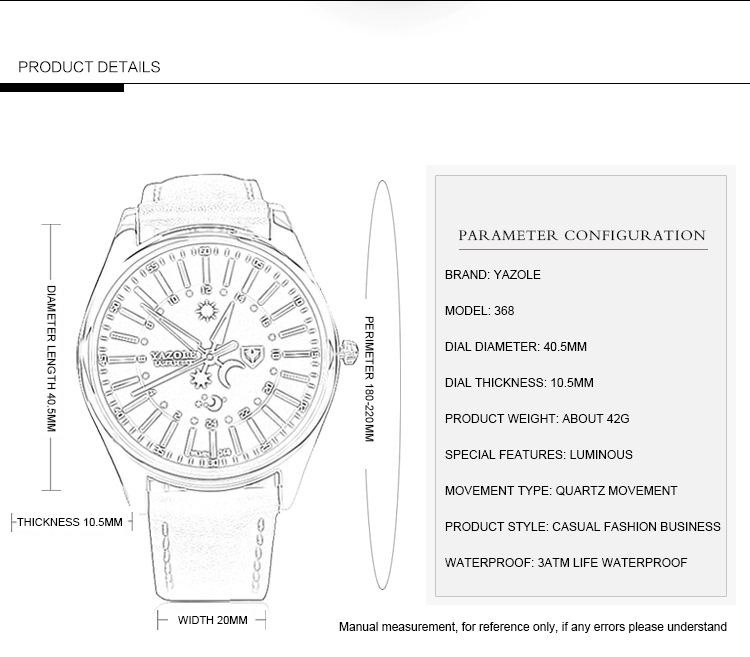 | Paquete incluido: | 1 x Reloj YAZOLE |